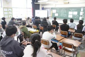 この日は、教育相談主任の話です。全校児童が「どこからがいじめなのか?」を考えました。