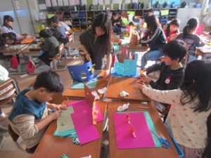 安全にカッターナイフを扱いながら、三角、四角、円など、様々な形のまどを切り出していきました。どんな作品に仕上がるのか、とても楽しみです。
