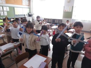 この日は、冬に遊ぶことができるおもちゃを作りをしました。
