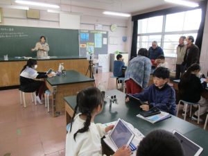 はじめに、実際の子どもたちの活動の様子を参観していただきました。インフルエンザ罹患により、人数の少ない学級もありましたが、子どもたちはペアやグループの仲間と共に学び合いながら活動を進めることができました。