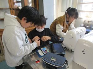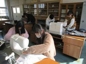 2月20日(金) 5年生は、家庭科の時間に「エプロンづくり」の製作活動に取り組んでいます。