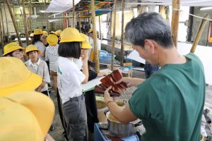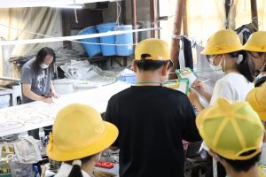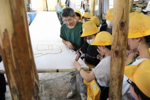 9月25日(木)に6年生が吉田旗店の見学学習をさせていただきました。吉田旗店は本校の校区にあり,全国でも有名なお店です。吉田旗店では「相撲のぼり」や「神社のぼり」,「大漁旗」などがつくられています。店内では,職人の方々が黙々と作業をされ,ひとつひとつの旗に魂を込めるかのような雰囲気が漂っていました。また,見学だけでなく仕事に対する思いや心構え,さらに「のぼり」に文字を書く時の工夫などを教えていただきました。吉田旗店の皆様,6年生のために貴重な作業の見学,またたくさんお話をいただき,ありがとうございました。