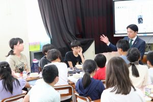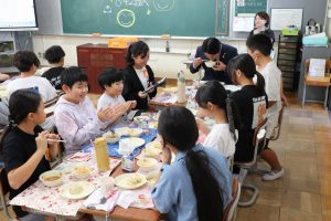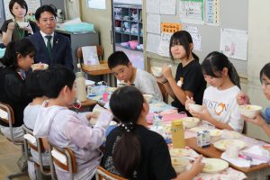 令和7年10月8日(水)の給食時間,岐阜市長の柴橋正直様(以下,当日6年2組の子ども達が「市長さん」と呼ばせていただいたので,市長さんと表記させていただきます。)と岐阜市教育委員会事務局次長様,教育統括審議監様にご来校いただきました。市長さんと一緒に給食を食べるという機会は貴重です。前半はグループでご歓談いただき,全校のお昼の放送を聞いていただいた後は,子ども達から色々な質問をさせていただきました。市長さんはユーモアを交えながらも一人一人の質問に誠実にお答えいただき,その都度子ども達は笑顔で「へえー」とか「なるほど」とか素直な反応をしていました。市長さんが子ども達にお答えいただいた話には「夢をもつことの大切さ」がたくさん詰まってた気がします。