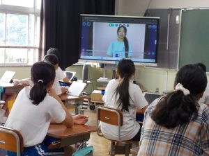 三輪中学校の生徒会執行部から届いたビデオレターを視聴し、