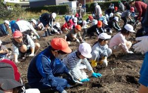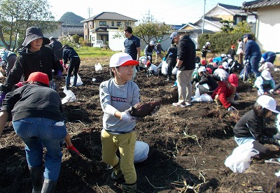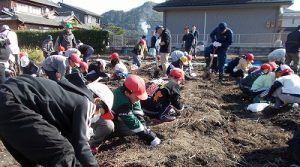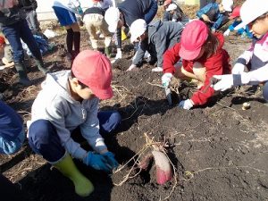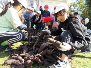 10月30日(木)見事な秋晴れの下、全校でさつま芋掘りに出かけました。