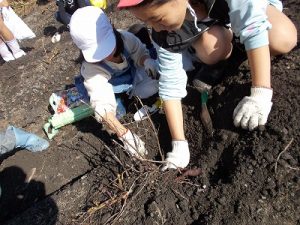 早速、わんぱく班のペアで茎の切り口を目印にして掘り始めました。