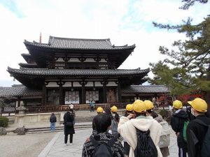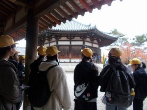 法隆寺では、昔の人々の技術の素晴らしさや願いを感じながら建築物や仏像の見学をし、