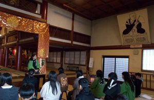 誓願寺では、落語クラブの4名が落語を奉納。お寺の方に質問をしながら学ぶこともできました。