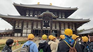奈良公園では、大仏の大きさを目の当たりにして感動したり、外国の人に英語で話しかけたりして
