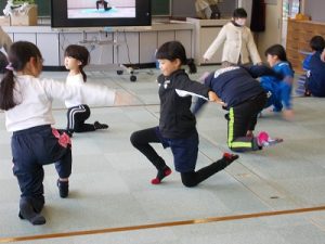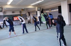 多目的室では、保健委員会主催の「体幹トレーニング」