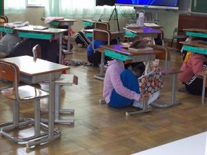 緊急地震速報を聞いた子どもたちは、今までの訓練通り