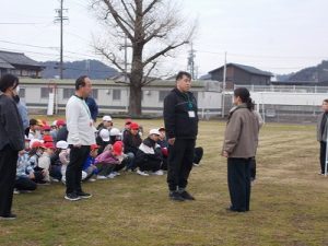 席を外していた子には、職員が付き添って運動場に避難しました。