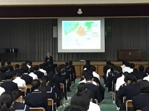 5月1日、3年生は平和学習の一環として、広島平和記念資料館の土本英記さんのお話を聞きました。被爆者から被爆体験を直接受け継いだ伝承者として、被爆の体験や平和への思いを熱く語ってくださいました。生徒は、「平和」とは何かを改めて考える貴重な機会となりました。