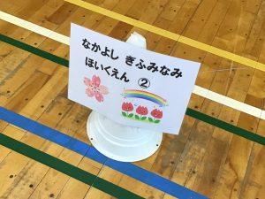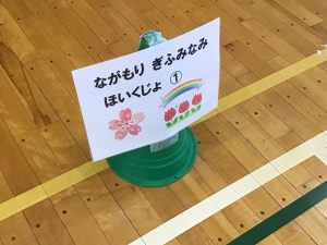 インフルエンザの流行で一旦延期していましたが、2月18日になかよし長森南保育園と長森南保育所の園児を迎えて一緒に昔の遊びを楽しみました。