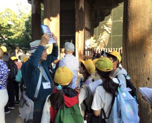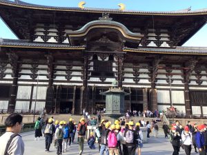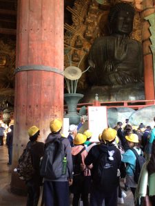 次は、奈良公園班別研修です。南大門の見学からスタートし、大仏殿、二月堂、三月堂、買い物体験を行いました。