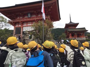 初めの見学地は、清水寺です。清水寺の前で、集合写真を撮りました。