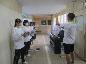掃除終了後、校舎中に美しい歌声が響き始めました。今月末に開催される合唱祭に向け、今月から掃除終了後に合唱練習の時間が設定してあります。各学年・学級でまずはパート練習を中心に合唱練習が進められています。合唱祭当日には、どんな合唱を聞かせてくれるのか楽しみです。