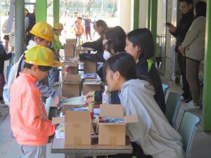 体験コーナー、遊びコーナーそれぞれ9つに分かれ、受付や運営に関わるお手伝いをしました。どのコーナーでも体験した小学生の笑顔がたくさん見られました。自分たちが小学校の時に楽しんだことを今度は楽しませる側にまわり、成長した姿を地域の方や小学校の先生に見ていただくことができました。ボランティアのみなさん、ありがとうございました。