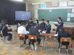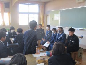 3日(火)に「3年生と語る会」を実施しました。あと一か月後に卒業を控えた3年生一人一人が、自分自身の3年間の歩みから後輩に伝えたいことを縦割りのグループの中で語りました。自分が変われたきっかけや継続して取り組んだことから学んだこと、仲間とのかかわりから成長できたこと、後輩へのメッセージなどを語りました。