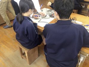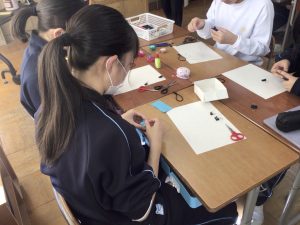 進路学習の一環として、高校生による出前授業を行いました。様々な各高校の特色を学んだり、体験活動をしたりしました。