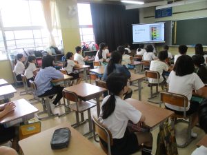 今回は、朝の全校放送で、本校のスクールカウンセラーの先生から、自分の中のモヤモヤが膨らむと大きな悩みやストレスに変化してくるということ、悩みやストレスが大きくならないようにするためにどうすればよいか、自分や友達を大切にするためにできることや心がけていくことを考えてほしいなどのお話をしました。