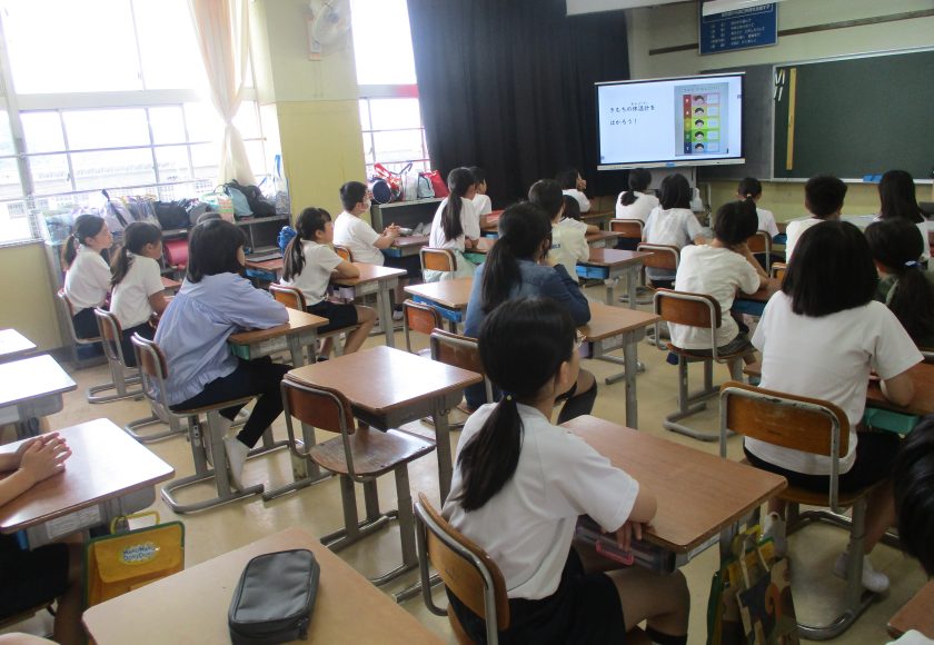 その後の学級活動では、心のSOSを測る気持ちの温度計を提示して自分の困り感に向き合ったり、ストレス解消法として腹式呼吸を紹介したり、子どもの心が解放されるような働きかけなどがありました。