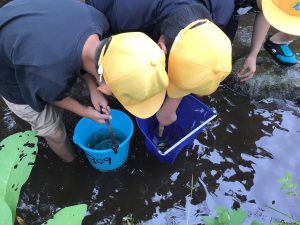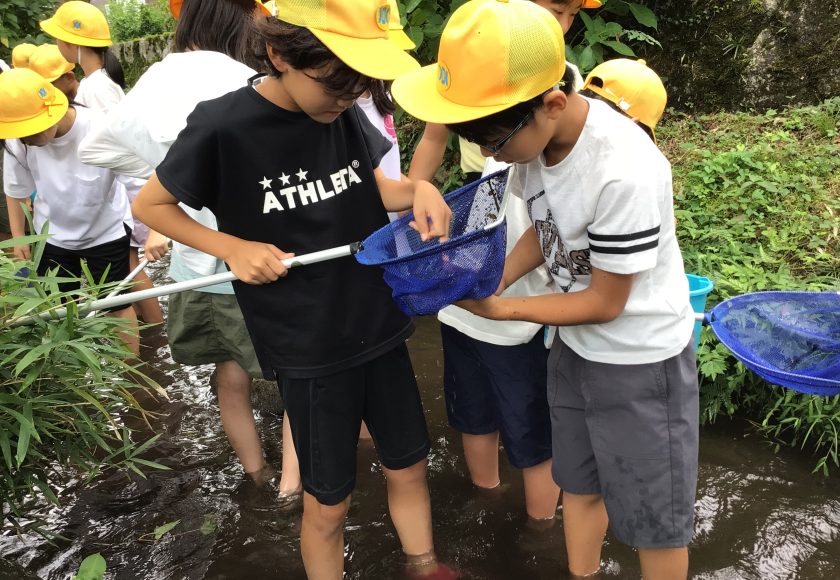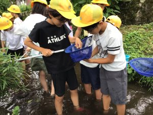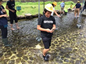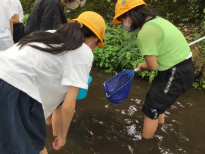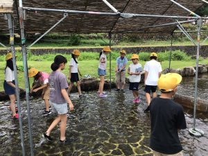 班ごとに分かれて、河川調査、鮎のつかみ取りを体験しました。