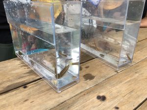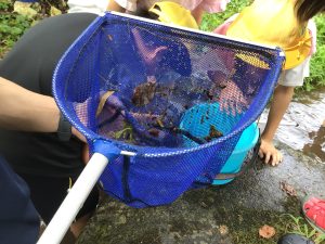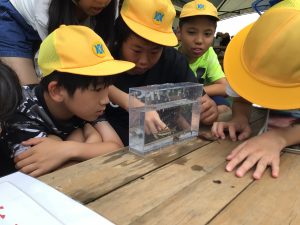 一見透明に見える川でも、網ですくって見ると、多くの生物がいることがわかりました。