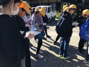 東っ子たちは、白川郷学園の児童の詳しい説明の要点をメモしながら熱心に散策し、大人のガイドさながらに合掌造り集落のことを知って説明できる白川郷学園の児童の姿に、故郷白川村を誇りに思っている様や故郷のことを深く学ぶことの大切さなど、同じ6年生として様々感じたと思います。