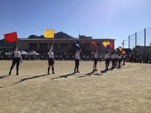 6年生は、フラッグ演技でオリンピックのフィナーレを飾ってくれました。下級生が憧れ、「かっこいい」との声が漏れた、6年生の気持ちが入ったフラッグ演技は教職員含め見るものを感動させてくれました。フラッグも、本校のオリンピックの伝統、名物と言っても過言ではないと思います。