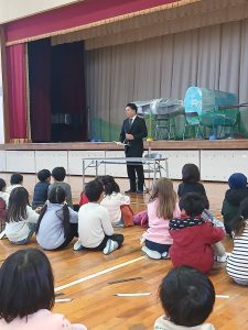 その後、全校児童に向けて、挨拶は違いがある私たち同士が互いを尊重していることの印であることや市長さんの子どもの頃の仲の良かったご友人との友情についてのお話をしてくださいました。