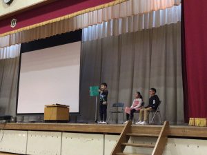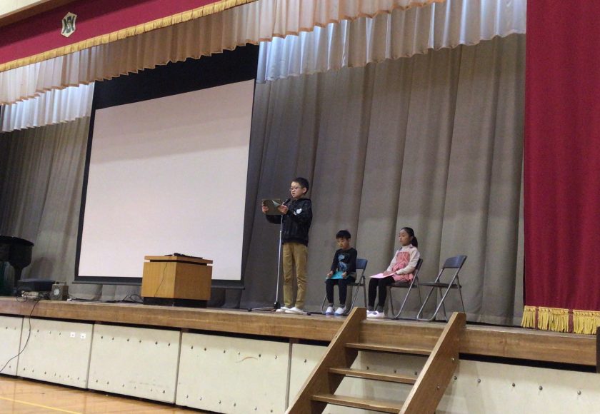 1年生は努力をして縄跳びが飛べるようになった経験を基に、冬休み明けもがんばりたい、また4年生は、苦手に感じていた漢字の書き取りができるようになったので、さらにその苦手を克服したいという決意表明がありました。