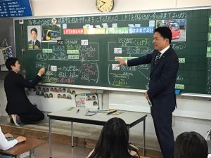 2月18日、3年生の社会の授業に、柴橋岐阜市長さんがご来校され、3年生の授業にご参加くださいました。