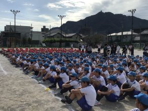 24日(水)に、一回目の全校練習を行いました。開閉会式の流れや並び方について確認をしました。素早く移動したり自分の場所を覚えたりして、一人一人が目的意識をもって参加することができました。