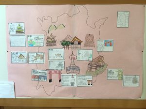 「京都・奈良には、どのような建造物があるのか。何が有名なのか。」これまで社会科を中心に学んできたことと関連付けながら、さらに自分たちで学びを広げています。