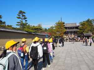 奈良に到着しました。まずは世界文化遺産・法隆寺の見学です。