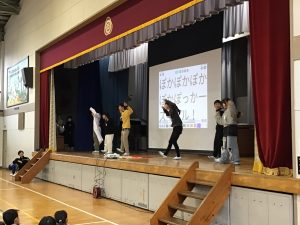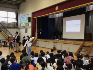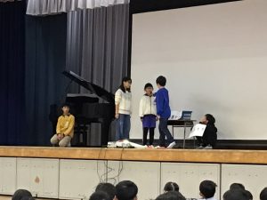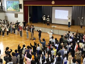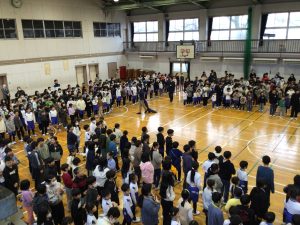 集会の最後には、みんな大好きザブーン村長も登場しました。全校合唱「手をつなごう」では、やさしい歌声が体育館中に響き渡り、あたたかい気持ちにつつまれました。