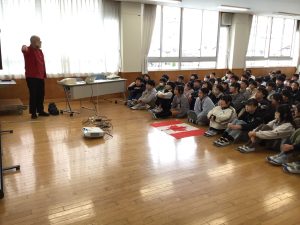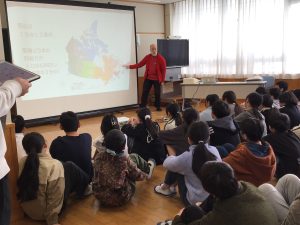 今回は関わり続けてきたカナダについてさらに深く知るために、東海学院大学よりアンドリュー・デュアー教授を招きました。デュアー教授からは岐阜県とカナダとのつながりや自然、人気の食べ物、盛んなスポーツなどを教えていただきました。さらに、デュアー教授が研究を続けている日本文化の一つである「折り紙」について、「紙飛行機作り」の体験活動も行いながら学びました。