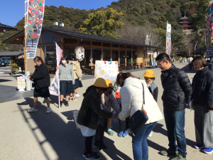 2月19日は暖かな気候の中で、今年度最後のひまわり活動を行うことができました。「東日本大震災について」「阪神淡路大震災について」「愛の歌について」それぞれのひまわりに込められた意味や思いを、多く学んだ今年度。学んだ意味や思いを多くの人に広めたいと、川原町と岐阜公園、岐阜城楽市ではひまわりの種を配りました。
