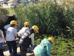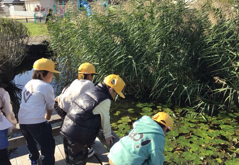 11月14日(金) 1年生のみなさんは、生活科の「こうえんであそぼう」の学習で「春近親水公園」に行きました。5月に訪れた時には公園にはたくさんの「春」があり、タンポポやシロツメクサ、黄色いアヤメの花などを見つけることができました。