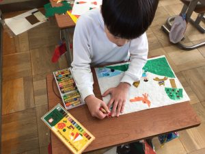 絵の世界が広がるように、クレヨンで絵を書き足して完成です。