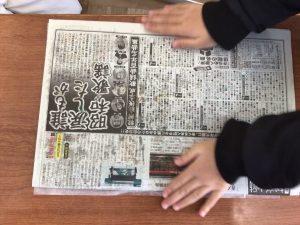 2年生のみなさんは、型紙や版で作った形をうつして、作品づくりに取り組んでいます。動物など自分の好きな生き物を紙で切り抜き、型紙を作ります。台紙に型紙をおいたら、新聞の上からていねいにこすり、色をうつしとります。「どこに(型紙を)おくといいかな」「少し版を重ねてみたら色も重なって、いい感じだよ」など、自分の作品を見ながら楽しそうに制作していました。