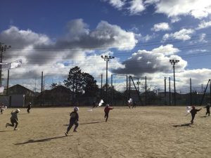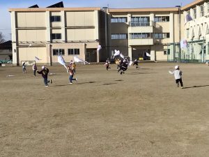 1月8日(木) 1年生のみなさんは、生活科「ふゆとなかよし」の学習で凧あげに挑戦しました。