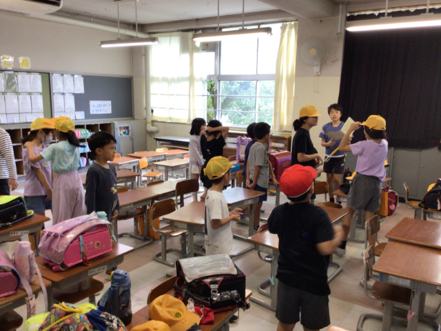 安心して、登下校ができるよう、登校班ごとに集まって、登下校学習を行いました。
