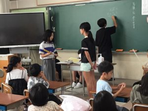 登校班の班長を中心にして、今までの登校の様子を振り返ったり、並び方を確認したりしました。