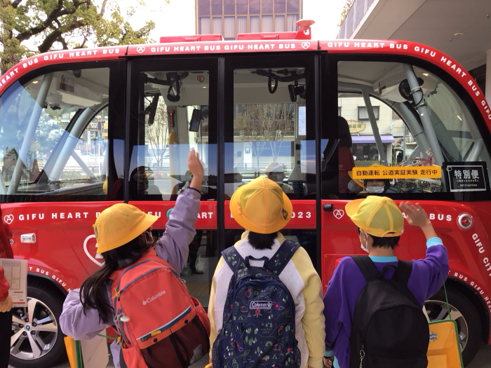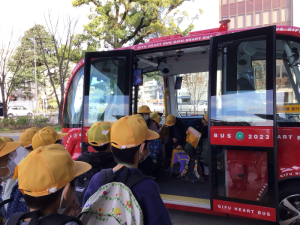 ぎふメディアコスモスや市役所の見学、自動運転バス『GIFU HEART BUS』の乗車体験などをしました。