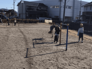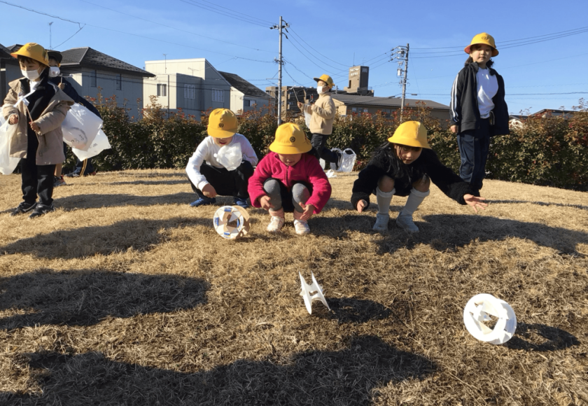 「かぜであそぼう」をテーマに、自分たちで作った「かざぐるま」「かざわ」を持って新田中央公園へ行き、風を利用した遊びを楽しみました。