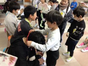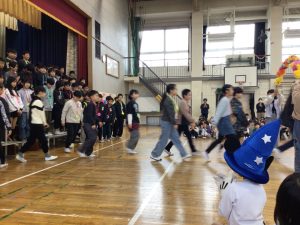 6年生を送る会を開催しました。今年も2部制で、縦割り班による会と全校が集まる会を行いました。