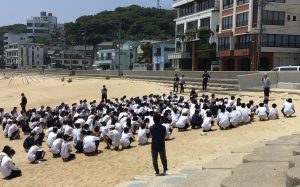 海を目の前にした活動を行いました。この研修で得たことを今後の生活にいかして