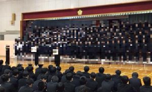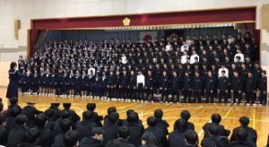 第一部は、各教室にて、全校を縦割りにしたグループで、3年生一人ひとりが「3年間の努力や成長、後輩へのメッセージ」を1・2年生に伝えました。1・2年生は3年生の話から、今の自分を振り返り今後の自分について考えることができました。